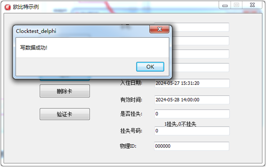 b.把客人卡放到发卡机上面,点击"写卡"按钮