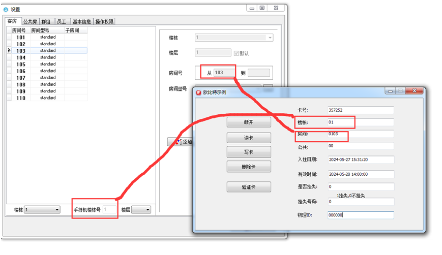 room:[out] 如果是客人卡, 返回房号.